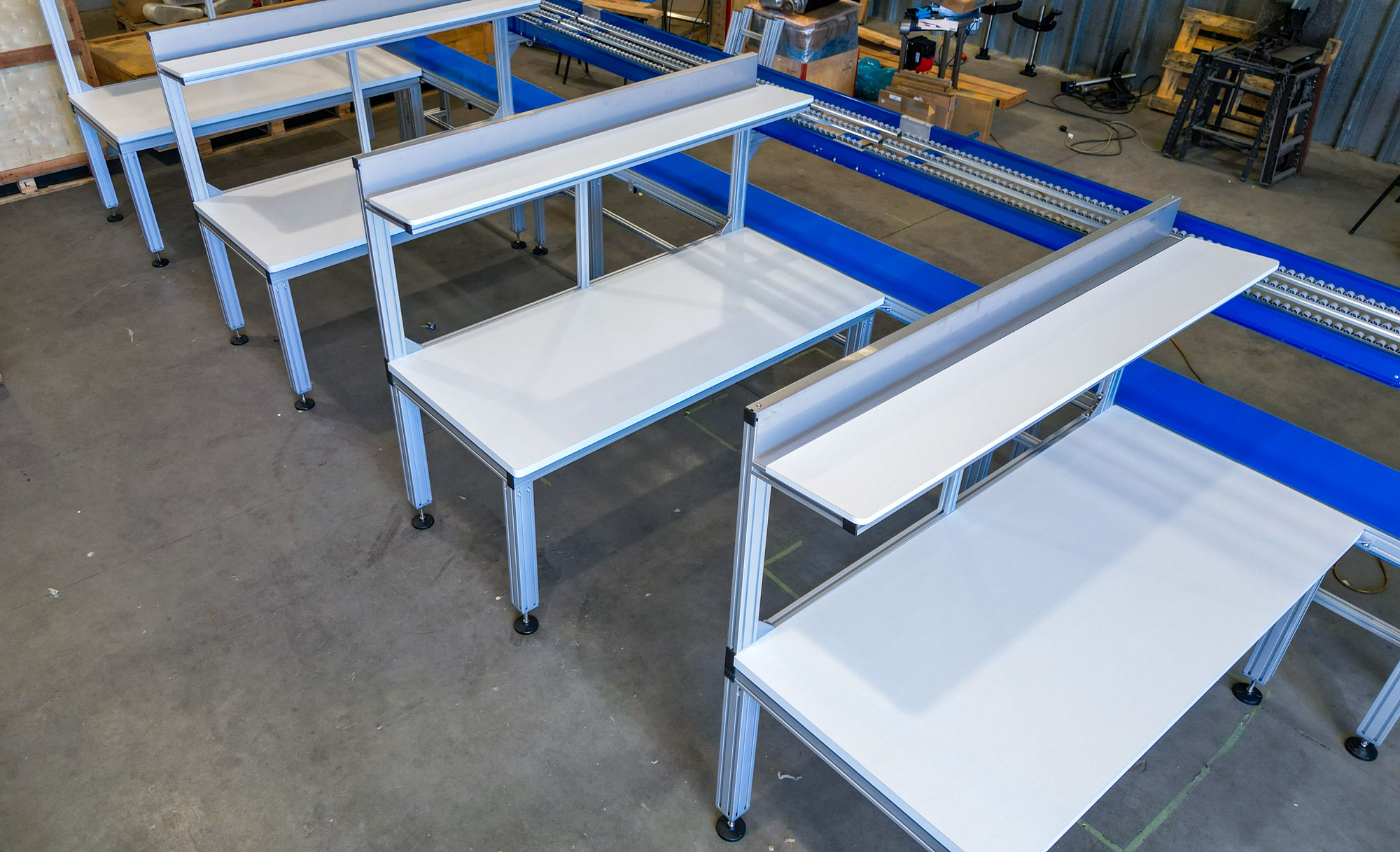 - 4 individual packing stations built to ergonomic standards.