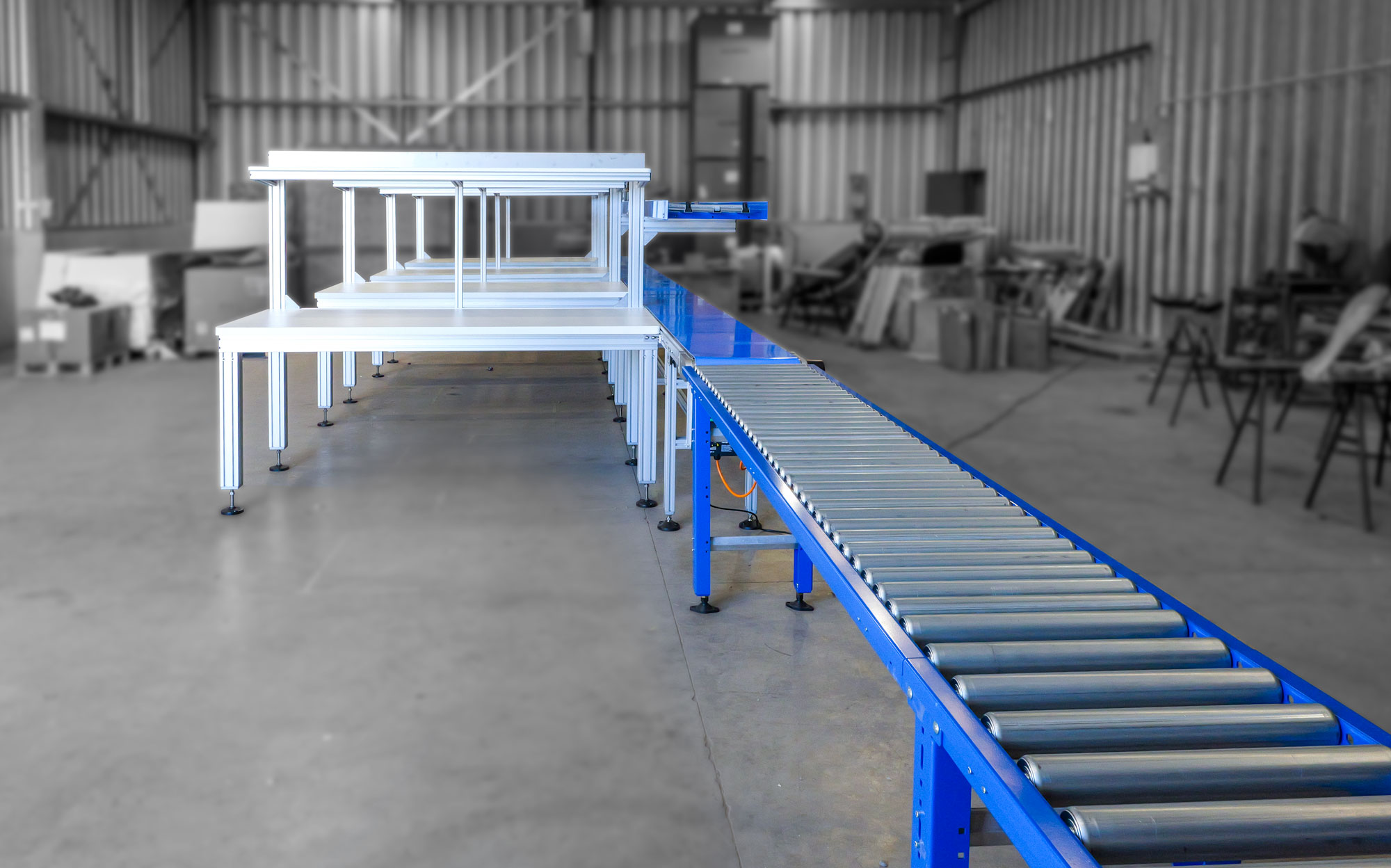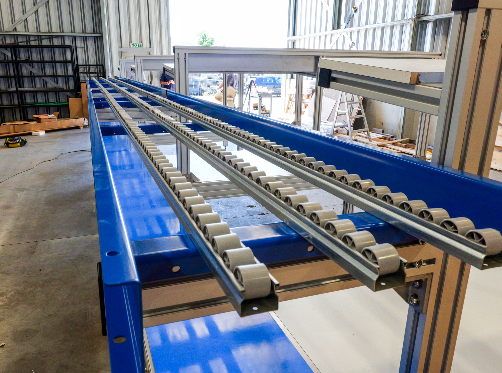 - 3m RollPro gravity roller conveyor for accumulation and smooth dispatch.