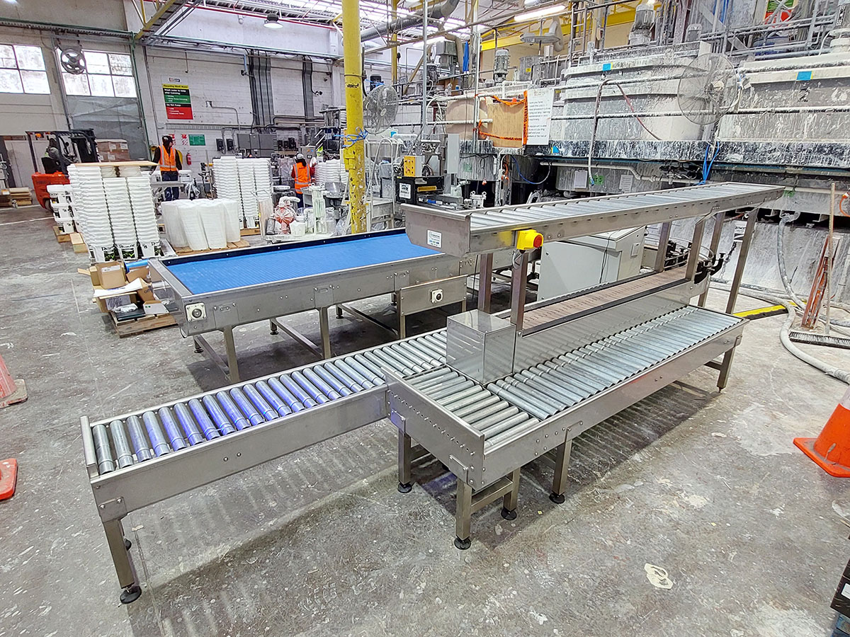 The conveyors were fitted together onsite in just two days, followed by electrical wiring and control system programming. This included testing and optimising an operating recipe for each can size. Operators and packers were trained in the use of the new touch screen control system and how to best load the cartons, although as the system was so intuitive and packing stations designed with ease of packing in mind, they learnt and adapted to the new operating and packing procedures within minutes.