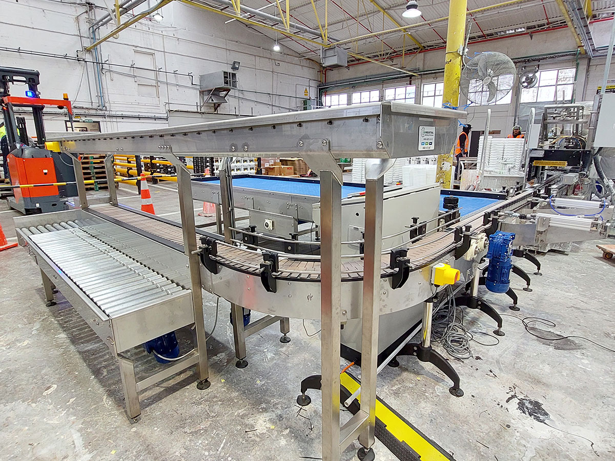 The new system increased productivity because the DeVree filler doesn’t need to be stopped in the middle of a production run. There is now enough can accumulation for more than 5 minutes when packers are absent, and cans get automatically re-introduced onto the feed conveyor once packers catch up, without human intervention and while production continues.