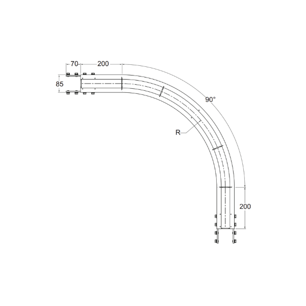 Integrate precision and flexibility into your conveyor system with the DM3 Horizontal Plain Bend 90 Degrees. Tailored for efficient material handling around corners, this bend offers various effective track lengths.